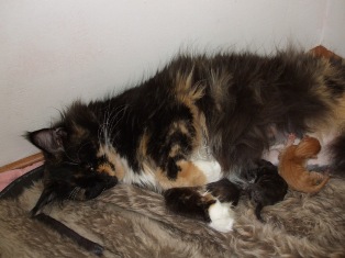 § A few days before she is due to give birth the pregnant female will become restless and will look for the best nest. This will normally be quiet, warm and in one of the darker parts of the house. This is where she will give birth. It is a good idea not to disturb her in her nesting place.
